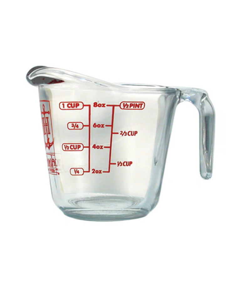 This 1-cup Measuring Cup from Anchor Hocking is constructed of clear, durable, heat-resistant glass which is microwave, oven and dishwasher safe. The sturdy measuring cup features an easy-to-read, red measuring guide for precise liquid measurements when cooking and baking. Proudly made in the USA.