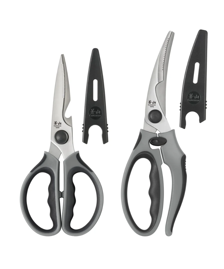 Cangshan shears are crafted from durable 420 stain-resistant steel and sharpened to a precise edge. The utility shears are versatile cutting tools, perfect for the kitchen and crafting. The spring-loaded poultry shears are robust enough to cut through bone easily. These kitchen scissors have been designed to be comfortable to use and provide a secure grip.
