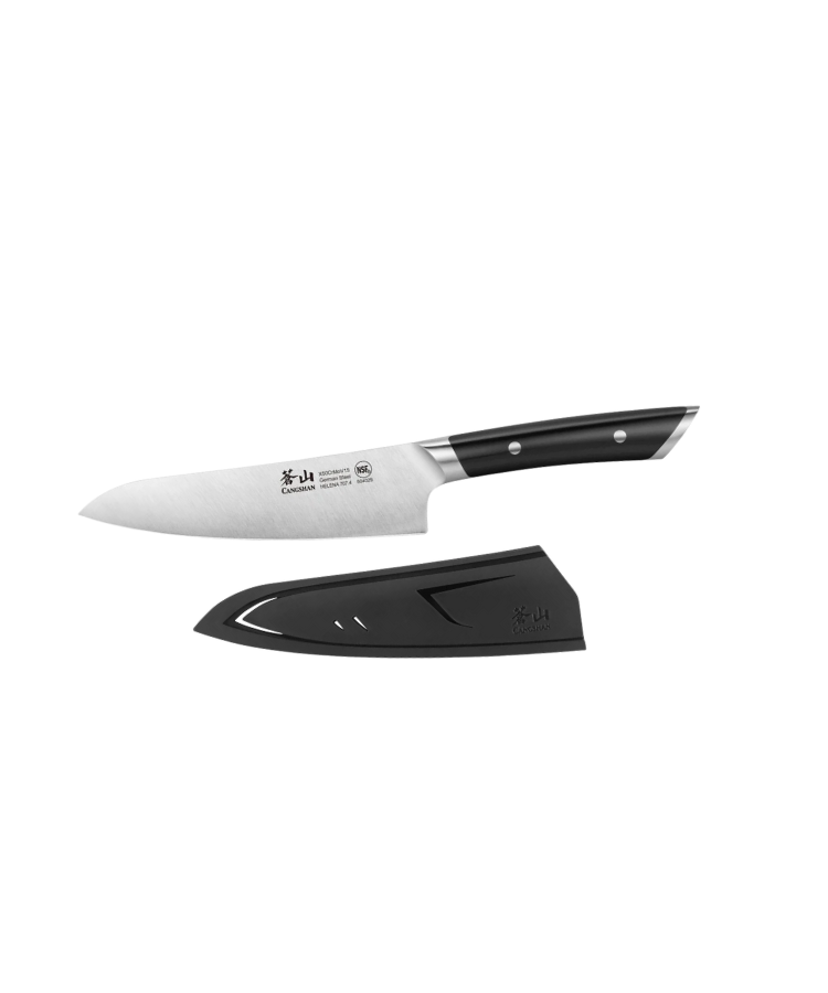 The HELENA Series is an elegantly minimalist interpretation of the modern kitchen knife. A slim, semi-bolster perfectly balances the knife's full tang while complementing the sleek, smooth lines of the handle. Two stain-resistant steel rivets solidly fasten the ergonomic handle to the blade, providing a secure, comfortable grip. Every blade is forged from high-alloy German X50CrMoV15 steel and meticulously heat treated, ensuring a razor-sharp edge with exceptional durability and edge retention.